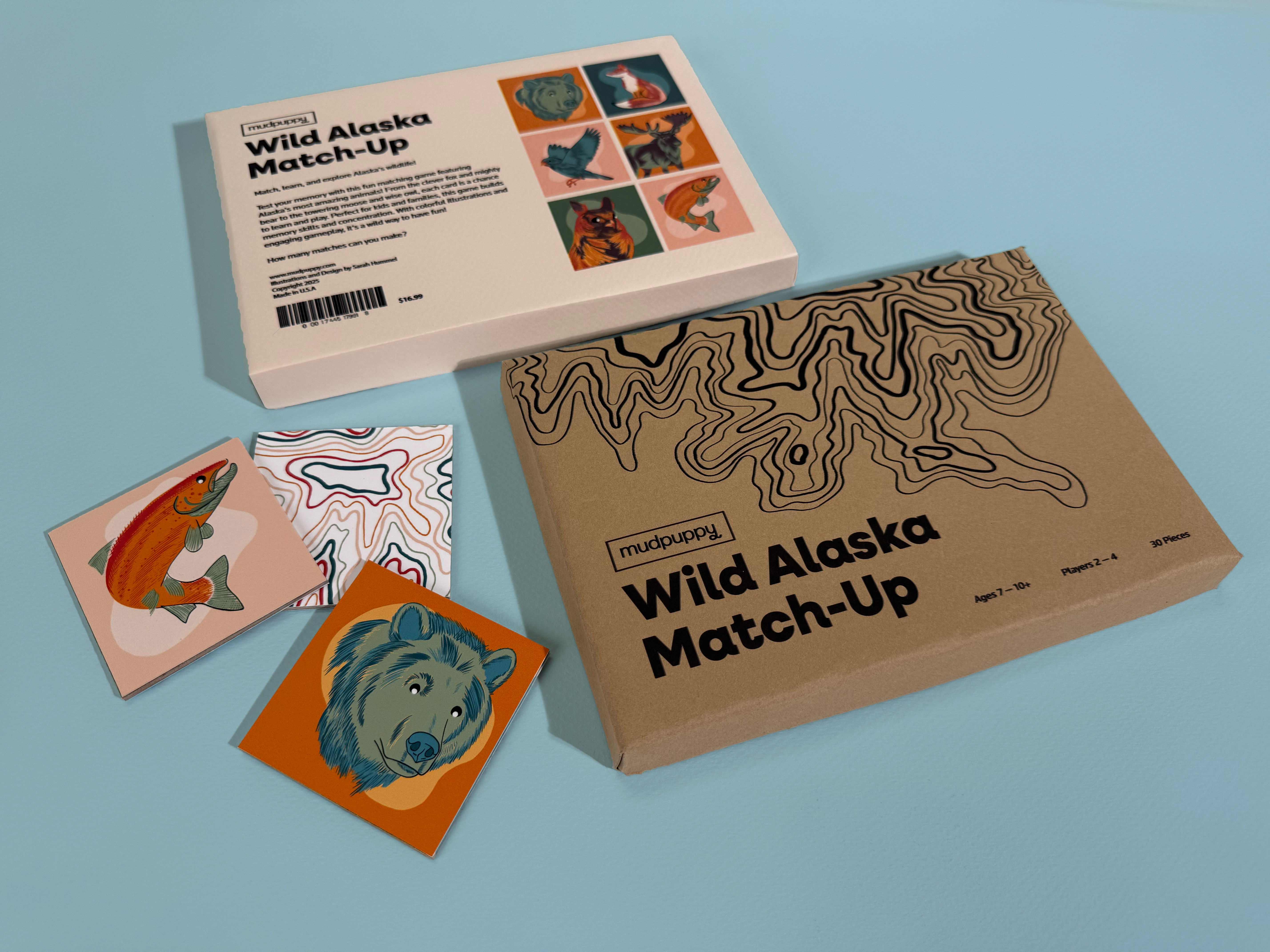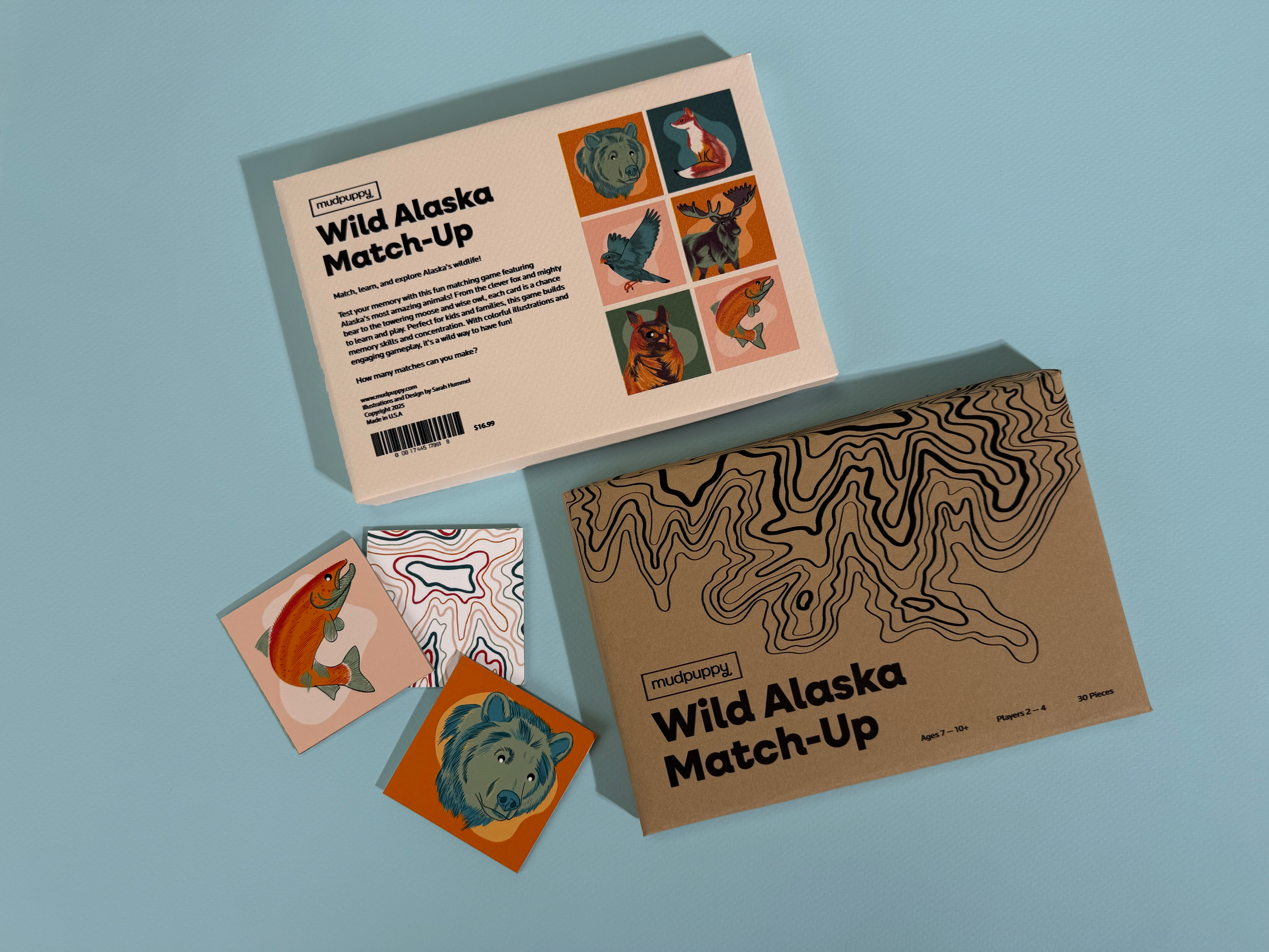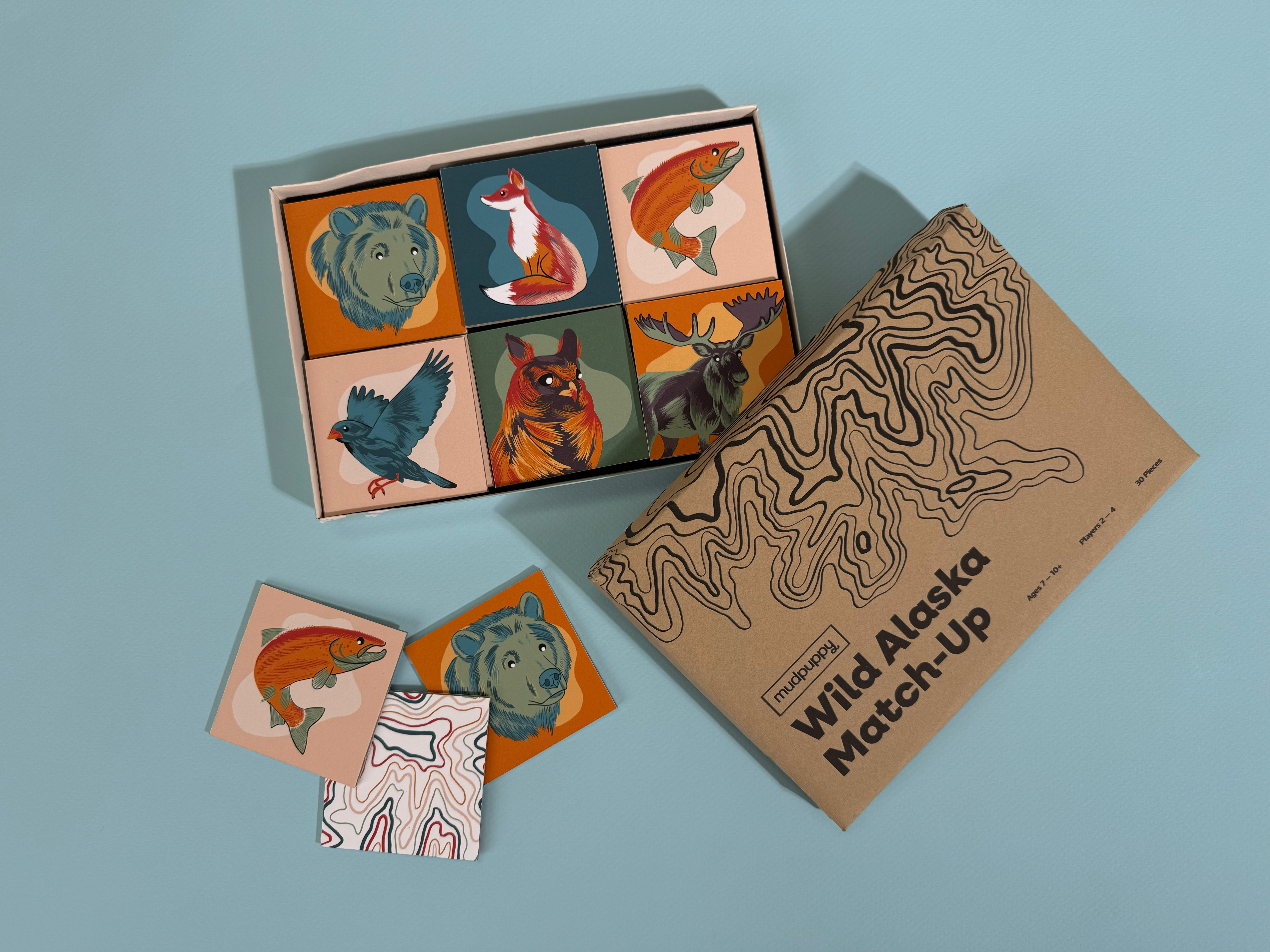 This project features a full-size packaging system and a cohesive set of illustrated matching cards designed for a children’s game. From a curated list, six distinct animals or characters were selected and illustrated with unique silhouettes or color schemes to support easy recognition by young players. The illustrations maintain a consistent style and visual language to unify the set while highlighting individual character traits. A custom repeating pattern was created for the card backs to add a playful yet clear finishing touch to the overall design.