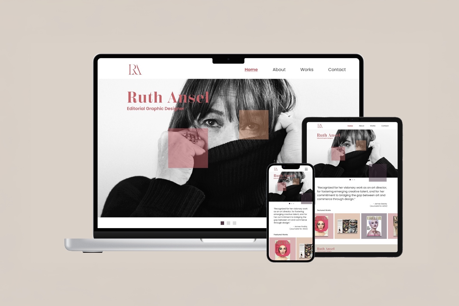 This project involved the creation of a fully responsive website dedicated to showcasing the work of a selected designer. The objective was to design an engaging and functional digital platform that adapts seamlessly across devices, including desktops, tablets, and mobile phones. Emphasis was placed on maintaining visual consistency, clear navigation, and effective use of layout and typography to highlight the designer’s style and contributions. The final result demonstrates a user-centered approach to web design, balancing aesthetic presentation with accessibility and performance.