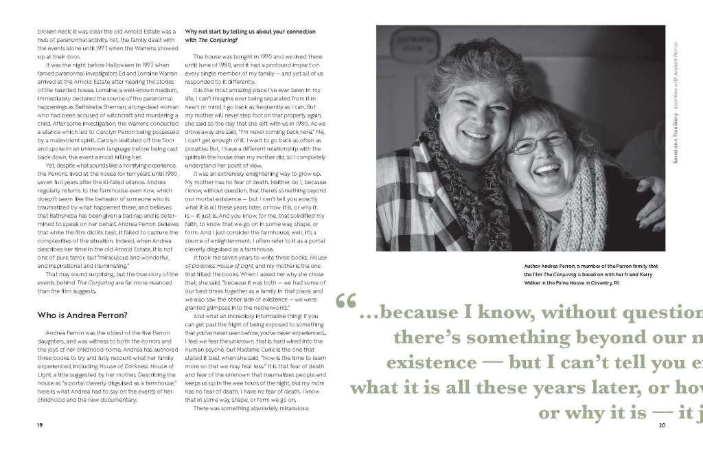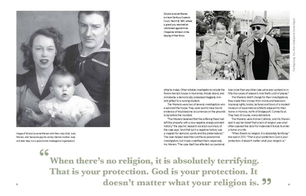 This booklet is meant to take readers beyond the movie screen and invite them to learn about the real people, places, and events that laid the foundation for James Wan’s film franchise. It is divided into three sections focusing on investigator history, case breakdown, and movie translation.