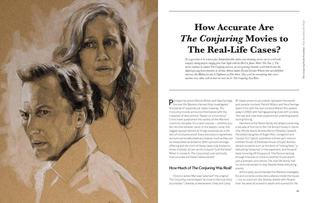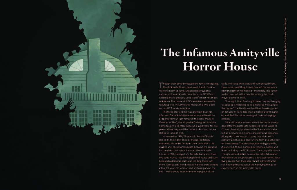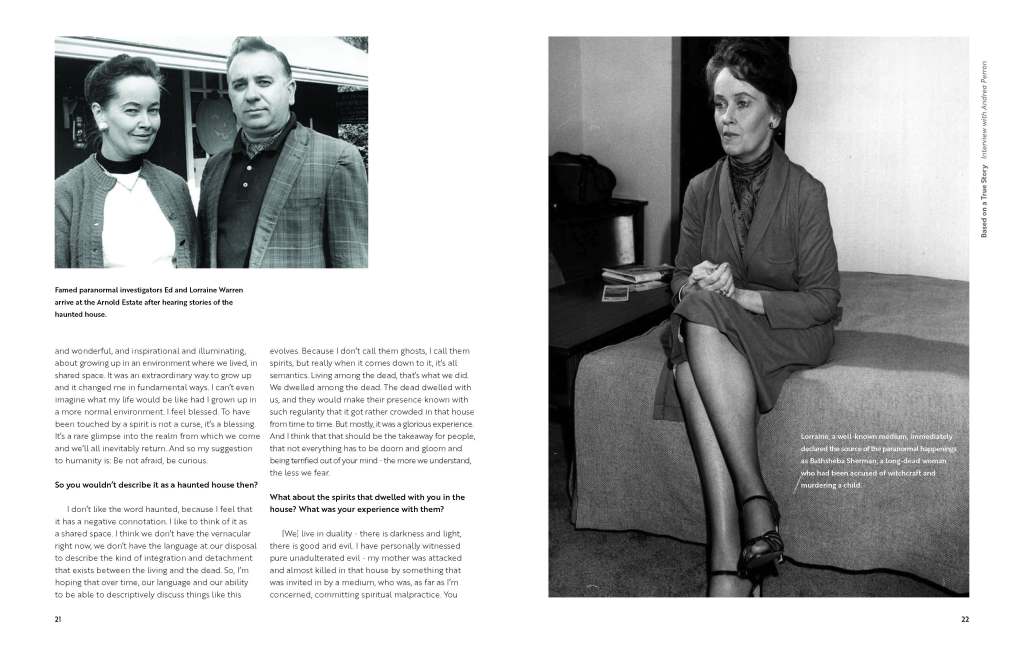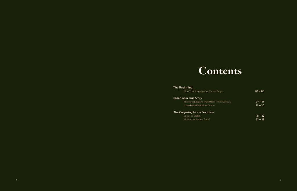 The booklet serves as an educational resource by presenting a side-by-side comparison of the Warrens’ real-life cases and their dramatized film adaptations. Complex information was distilled into an accessible format through curated research, typographic hierarchy, and clear visual organization, allowing readers to understand both the historical accounts and the creative liberties taken in cinema.